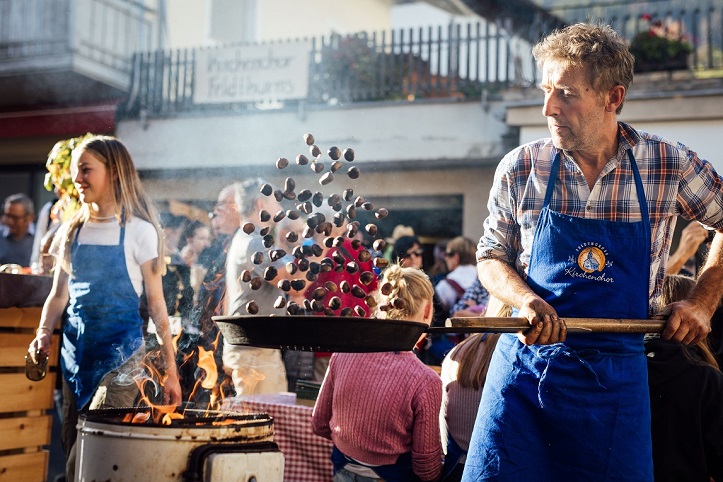 E poi ci sono le feste, come le “Settimane delle Castagne” a Velturno, dal 18 ottobre al 9 novembre 2025. Con oltre 3.000 esemplari che ne disegnano il paesaggio, il castagno è l’anima verde del borgo. Escursioni guidate tra i boschi, raccolte esperienziali, laboratori per bambini, degustazioni e piatti tipici della cucina contadina si intrecciano con la convivialità del Törggelen, l’antica usanza autunnale altoatesina fatta di vino novello e specialità locali. Momento clou della rassegna, la grande Festa delle Castagne anima il centro storico con il mercato “Nigl” e stand delle associazioni locali. L’appuntamento sul calendario per la 20esima edizione della “Festa del Törggelen” a Chiusa è dal 19 al 21 settembre 2025. Nei menù: canederli, insaccati con crauti, carne in salamoia, strudel di mele, castagne e vino novello. E poi: il tradizionale corteo per i vicoli e l’incoronamento della nuova Regina del Törggelen. E, naturalmente, il Siaße, il mosto d’uva appena fermentato. Un rito che racconta l’autenticità dell’Alto Adige più vero.