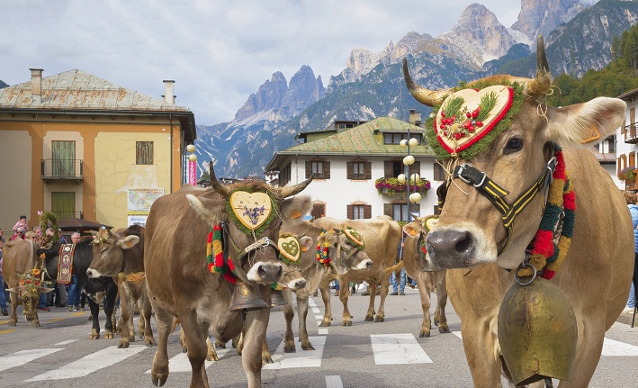 Nastri e fiocchi colorati, fiori e ghirlande decorative e naturalmente gli immancabili campanacci: l’autunno delConsorzio Turistico Tre Cime Dolomiti è la stagione della transumanza, anzi della Desmonteada, in programma il 4 e 5 ottobre 2025, a cura dei “Fei e Desfei”. Le mucche vestite a festa sono le grandi protagoniste della festa e sfilano orgogliose per le strade guidate dai loro amati pastori. La regina apre il corteo, ogni tanto si ferma per guardarsi intorno stupita da tanta ammirazione, per poi proseguire la via, seguita da tutte le altre. Oltre alle mucche sfilano i pastori con i cani, e poi pecore, capre, cavalli. È uno spettacolo davvero imperdibile e coinvolgente, che mette al centro la vita pastorizia e l’importanza del bestiame.