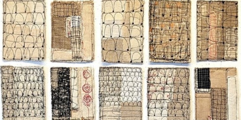| Immagine 1 Patricia Kelly, Installation of 20 Stitched Drawings, Each 15.5 x 10.5cm 2024. Machine stitch on collage of recycled and naturally dyed textile. Immagine 2 Patricia Kelly, Installation, 20 Stitched Drawings, each 15.5 x 10.5cm 2024. Machine stitch on collage of recycled and naturally dyed textile Immagine 3 Patricia Kelly – installation of 20 Stitched Drawings. Machine Stitch on collage of recycled and naturally dyed textiles. Each drawing, 15.5 x 10.5cm , 2024 |