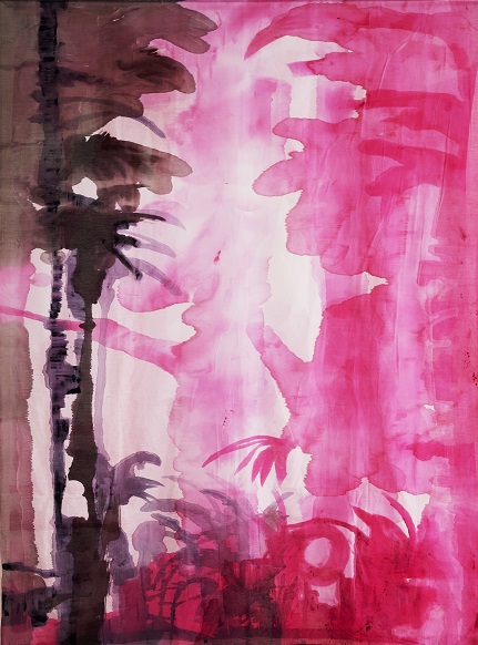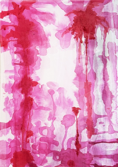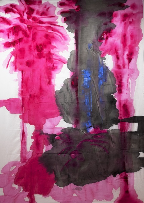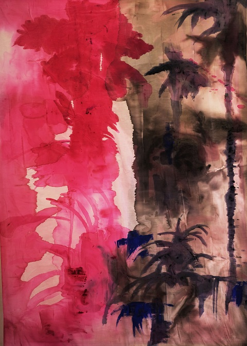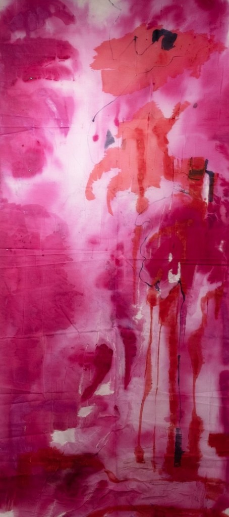 Le opere che danno vita a questa mostra nascono dal suo ultimo viaggio In India. Il progetto espositivo si compone di otto grandi tele di seta e cotone sulle quali l’artista è intervenuta con inchiostri, pigmenti e colori acrilici. La mostra si presenta fin da subito con un carattere installativo, creando un ambiente colorato di grande impatto visivo. Le pennellate compendiarie, la leggerezza dei tessuti unita alla gamma di colori utilizzati portano il visitatore a vivere una dimensione immersiva tale da fargli credere per un momento di essere proprio in India. Laura Federici ha cercato di restituire per via d’astrazione non solo i colori della natura ma anche gli odori, le voci e le atmosfere in generale che ha visto e sentito visitato la città di Varanasi. Un punto tra tutti però è quello che l’ha particolarmente interessata ed è anche quello intorno al quale si è sviluppata la mostra: una delle sponde totalmente disabitata del fiume Gange che attraversa la città. È proprio qui infatti che l’artista ha avvertito quella che lei stessa ha definito come una magia, un luogo sospeso. Qui ha avuto inizio il suo viaggio e sempre qui si è concluso.»