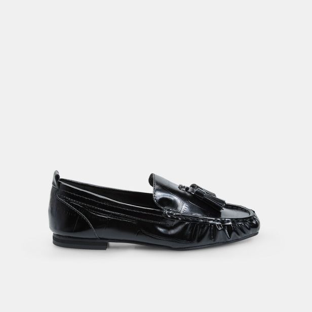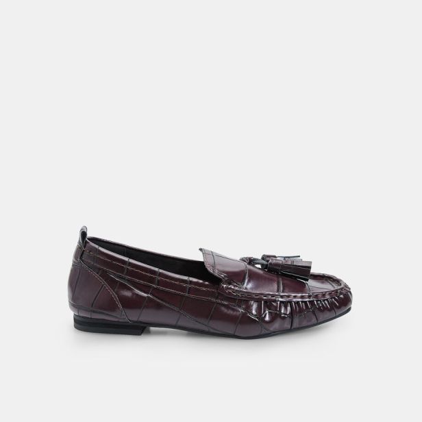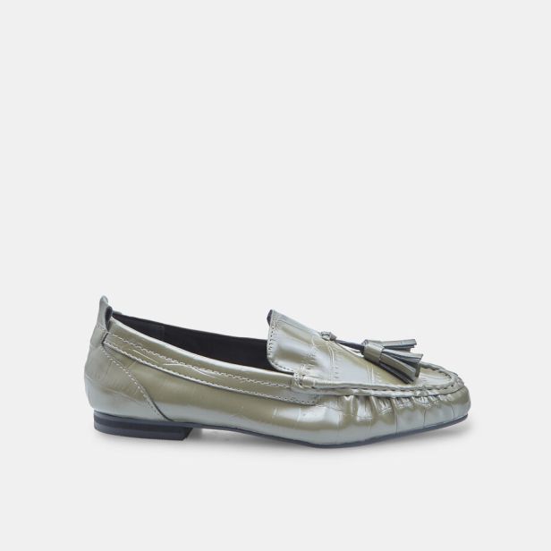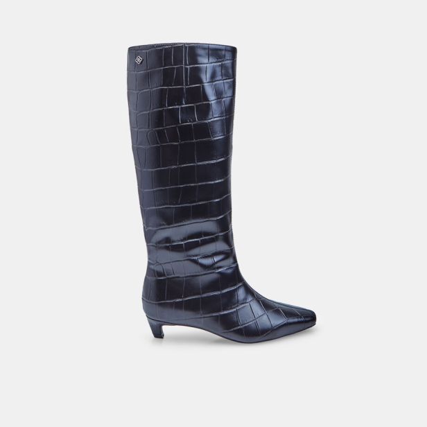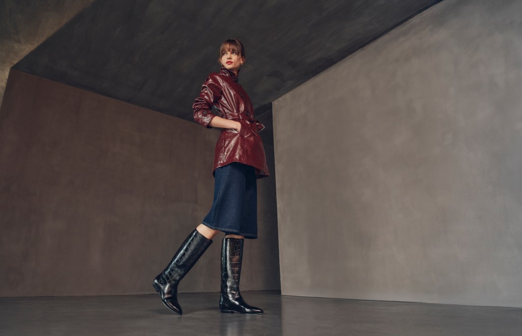 Le ballerine diventano protagoniste delle giornate più dinamiche: punte affusolate e silhouette leggere le rendono perfette per accompagnare mattine culturali al museo o pomeriggi di shopping con le amiche. Le versioni in vernice bordeaux, nero lucido e suede verde oliva raccontano una femminilità contemporanea, capace di muoversi tra eleganza e praticità senza compromessi. Accanto a loro, i mocassini si distinguono per il loro carattere deciso. Realizzati in materiale con stampa croco lucida e arricchiti da nappine, si impongono come emblema di comfort e ambizione. Non più soltanto scarpe da ufficio, ma un manifesto di stile urbano, pensato per chi vuole affrontare la città con passo sicuro e determinato. La collezione si arricchisce poi di stivali dalle linee essenziali e decise, capaci di slanciare la figura e trasformare ogni look. C’è chi sceglie il modello sotto il ginocchio con punta sfilata, elegante e intramontabile, e chi invece preferisce la versione più audace in stampa croco, simbolo di un’anima grintosa e metropolitana.