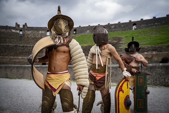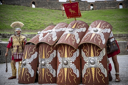 L’Anfiteatro sarà, invece, per eccellenza luogo dedicato ai Ludi Pompeiani, con combattimenti ricostruiti fedelmente e accompagnati da spiegazioni didattiche sulle figure coinvolte, le armi, le regole e il contesto sociale. Ampio spazio sarà dedicato alla movimentazione legionaria, con esercitazioni dimostrative e narrazione storica sull’organizzazione militare: legionari, centurioni, ufficiali e marinai (Classiarii).