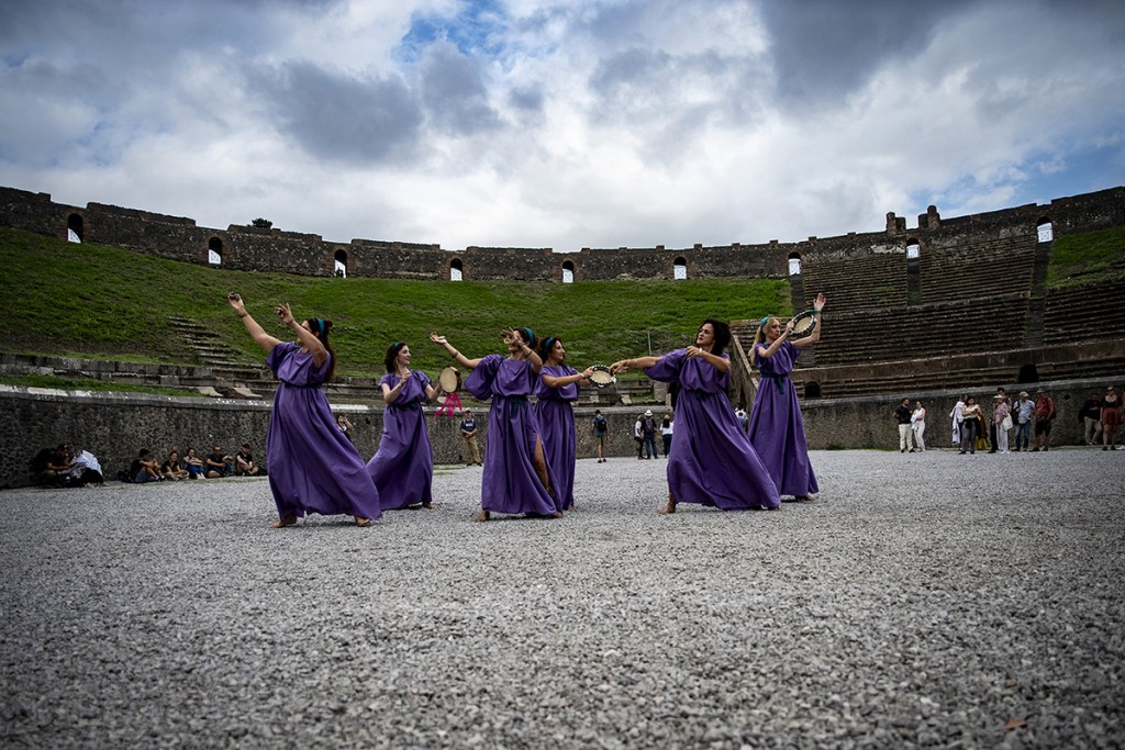 Al Teatro grande invece dalle 12.00 alle 13.00 e dalle 17.00 alle 18.00 si potrà assistere a esibizioni, di natura anche didattica, sulla gladiatura. Mentre dalle 16.00 alle 16.30 sabato, e domenica dalle 11.00 alle 11.30 la vita quotidiana e i mestieri femminili a Pompei saranno raccontati attraverso una serie di 3 performance teatrali, “De Mulieribus” (La sera prima delle nozze, La spatola di Sperata, Ogni mattina nella domus di Aulus Rustius Verus), intervallate da danze antiche.