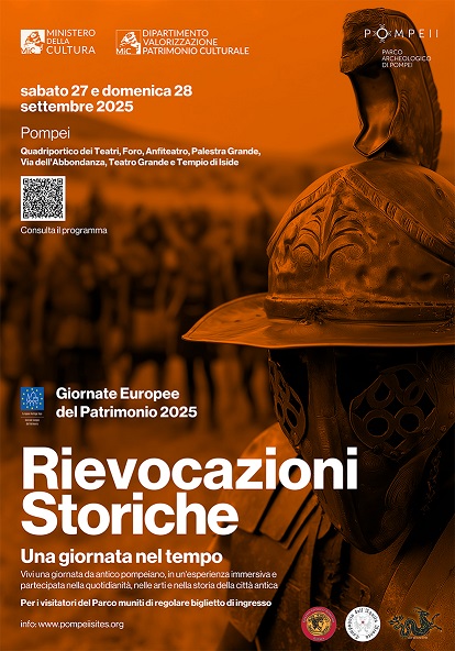 Il 27 e 28 settembre in occasione delle Giornate Europee del Patrimonio nel parco archeologico rivivono le arti, i mestieri, la vita quotidiana e militare. Dalle 9,00 alle 19,00 con ingresso a tariffa ordinaria. Il 27 settembre dalle 20,00 alle 23,00 (ultimo ingresso ore 22,00) “Passeggiate serale nei siti della grande Pompei”. Ingresso a 1€.