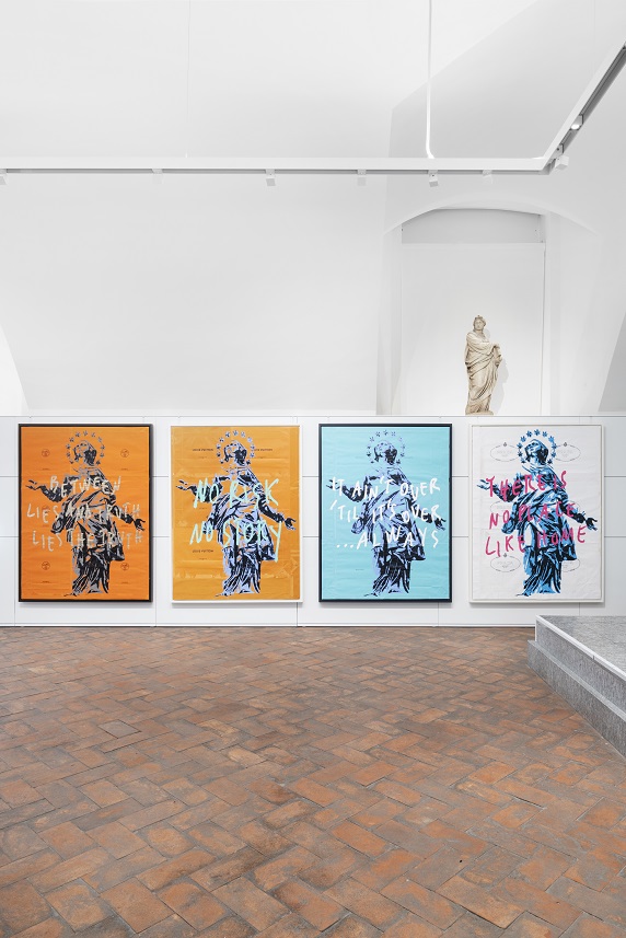“Are you in love? No, I’m in Milano” si configura così come un attraversamento ironico, ma non privo di profondità, della contemporaneità. Un viaggio tra testi e immagini, tra codici visivi condivisi e riferimenti a volte colti a volte ironici, in cui l’arte si pone come strumento per rileggere il presente e per ridefinire, anche solo per un istante, la nostra relazione con ciò che ci circonda: “Are you in love? No, I’m in Ambrosiana” © Antonello Grimaldi