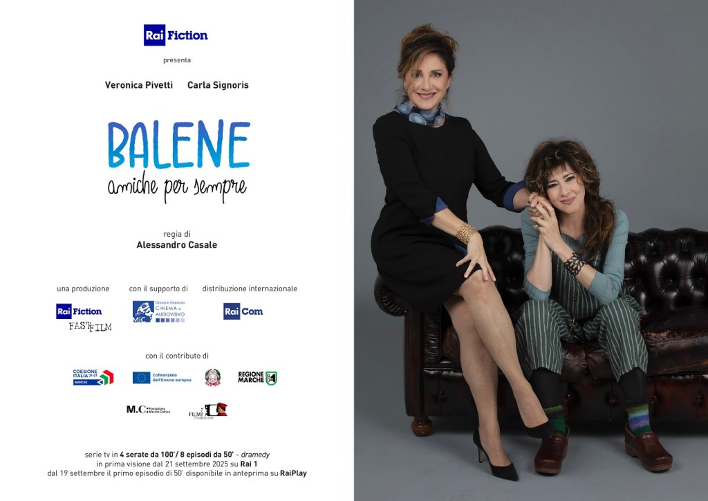 Veronica Pivetti (Evelina) e Carla Signoris (Milla) sono le protagoniste di “Balene”, un dramedy brillante e originale in cui due amiche scelgono di fare dei loro sessant’anni un nuovo inizio. Evelina e Milla, che si conoscono fin dai tempi dell’università, da dieci anni non si frequentano più, ma la scomparsa di Adriana, terza amica di sempre, riavvicina le due donne, così tanto diverse ma al tempo stesso accomunate dalla necessità di un grande cambiamento nelle proprie vite.