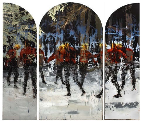 Il percorso espositivo comprende numerose opere, molte delle quali di grande formato, tra cui imponenti trittici su vetro eseguiti nel 2025 e l’installazione Bruma, che occupa un’intera sala della galleria. L’allestimento è concepito per accogliere il pubblico in una pinacoteca personale ed intima. L’artista spagnolo sembra ricordarci che la sua non è solo una ricerca formale, perché intende restituire alla forma anche l’anima, l’etica, l’impegno civile, tra l’essenza di un passato dimenticato, le nostalgie, i sogni e le memorie tradite nel presente.