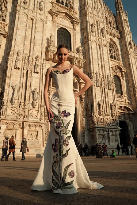 NATALI KUDRINA. Venera Kudrina presenta “La Gioia di Essere Donna” alla Settimana della Moda a Milano. Un’ode alla femminilità attraverso la moda. Giocosità e innocenza, audacia e coraggio, dolcezza, rigore, eleganza e dignità sono tutti stati che ogni donna attraversa, raccolti tutti in un’unica collezione.” Realizzata con seta, chiffon, pizzo, organza, tulle e tessuti strutturati, la collezione esplora l’intero spettro emozionale e la forza estetica della femminilità. Ogni tessuto ha un carattere proprio, si comporta in modo diverso, proprio come una donna: sempre diversa, ma sempre intera.