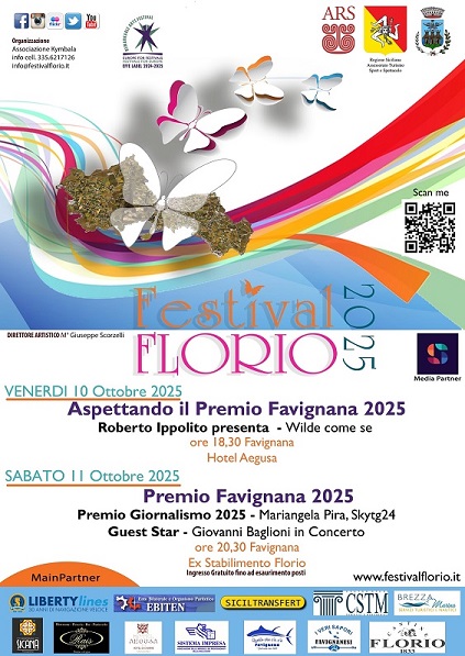 FestivalFlorio è promosso e organizzato dall’Associazione Kymbala con il Comune di Favignana e si avvale della collaborazione dei partner Cantine Florio, Liberty Lines, Hotel Aegusa, Siciltransfer, CSTM – Centro Studi Turistici e Manageriali, Brezza Marina, I Veri Sapori Favignanesi, Quello che c’è c’è, Ebiten, Ristorante Raìs, Sistema Impresa, Sicana e del media partner Tele Sud.
