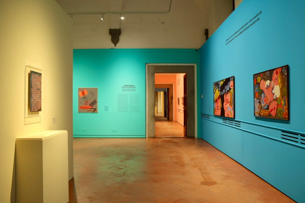 Ironia Ribelle, a cura di Marco Scotini e Stefania Rispoli, con la direzione artistica di Sergio Risaliti, in programma dal 2 ottobre 2025 al 6 gennaio 2026, riunisce oltre cento opere tra dipinti, disegni, sculture, arazzi, documenti e materiali d’archivio e restituisce la figura di un’artista anticonformista, che ha saputo unire ricerca estetica e militanza politica.