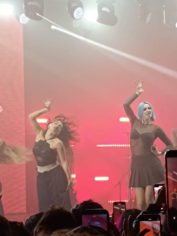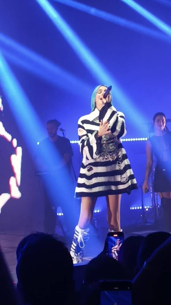 Il concerto di Rose Villain è certamente un’esperienza non solo uditiva, ma anche visiva, attraverso un gioco di luci e colori, ma soprattutto con l’ausilio di cambi d’abito, preceduti da un’immagine su schermo, che vede una Villain trasformata di volta in volta. Abiti che vanno dallo sportivo al sensuale, attraverso uno stile che ben si sposa con le note musicali dell’artista.