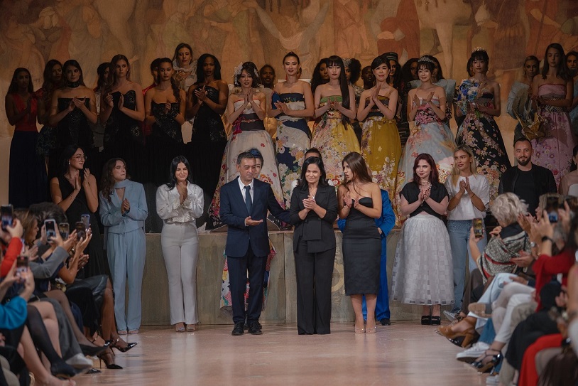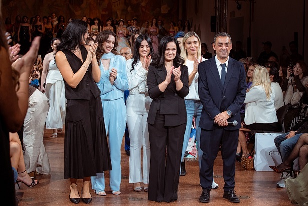 La Griffe Academy di Tirana ha stregato la platea con i suoi giovani prodigi, ciascuno portatore di un universo personale e distintivo: Albano Pano ha scolpito silhouette che sembravano statue in movimento, rigore e visione fuse in un unico gesto creativo, trasformando l’essenzialità in eleganza assoluta; Renisa Lusha ha esaltato la fluidità e la femminilità con un linguaggio fatto di armonia e grazia, ogni abito un respiro leggero capace di raccontare emozioni intime e profonde; Estela Koni con il suo progetto Gold Woman ha sorpreso con una visione magnetica e potente, trasformando la passerella in pura energia visiva e regalando un messaggio di emancipazione e coraggio, un inno alla donna come icona contemporanea; Dorela Sinjari ha portato sulla scena l’imprevedibilità delle forme, sperimentando volumi e trasparenze che catturavano lo sguardo come un gioco infinito di illusioni, evocando un mondo sospeso tra realtà e sogno; Erisa Demo ha incarnato la leggerezza e il romanticismo con una delicatezza poetica che ha reso la passerella un giardino di emozioni, un sussurro raffinato che invitava alla contemplazione; Mimoza Alla ha dominato con teatralità e magnetismo, regalando apparizioni scenografiche intense e vibranti che trasformavano la passerella in un palcoscenico totale, irripetibile e memorabile.