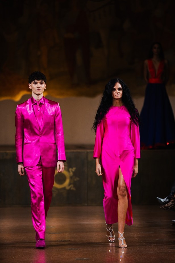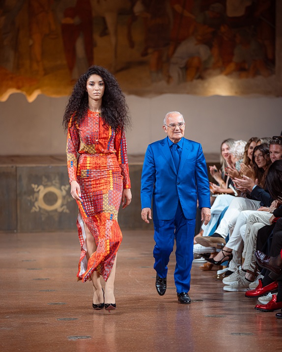 Il veterano Umberto Michele Perrera, a 87 anni e con 62 stagioni di passerelle, ha stupito con una collezione inedita firmata Sartoria Perrera: tagli impeccabili, linee rigorose e tessuti tecnologici che cambiavano con la luce, la dimostrazione che il tempo per lui non scorreva, ma si piegava alla sua arte.
