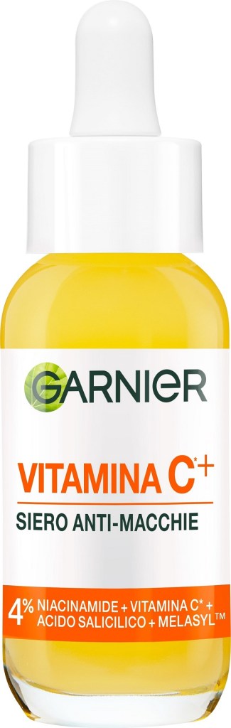 Il best seller Garnier, Numero 1 in Italia (Fonte Circana, Italia, face care – sieri – escluse le pl, mass market -hs+sss+drugstores+discounts -, dati a volume, 09 ottobre 2023 al 06 ottobre 2024), torna con una formula potenziata e ancora più efficace: un concentrato unico di principi attivi che, insieme alla VITAMINA C (derivato della Vitamina C. Efficacia testata – Fonte: Circana Italia, Panel cura viso – sieri – dati a valore a MAT 12/2023) – con il 4% di vitamina Cg –, potente antiossidante, donano nuova luminosità alla pelle. Nella nuova formula, il MELASYL™, brevettato dopo 15 anni di ricerca, riduce l’eccesso di melanina, principale responsabile delle macchie scure. Tra gli altri principi attivi, la NIACINAMIDE uniforma l’incarnato e migliora l’aspetto della pelle, mentre l’ACIDO SALICILICO esfolia delicatamente e stimola il rinnovo cellulare. Il siero, grazie alla sua texture leggera e naturalmente colorata di giallo, non appiccica e si assorbe in un istante, uniforma il colorito e lavora in profondità sulle discromie, regalando una pelle più omogenea e radiosa.