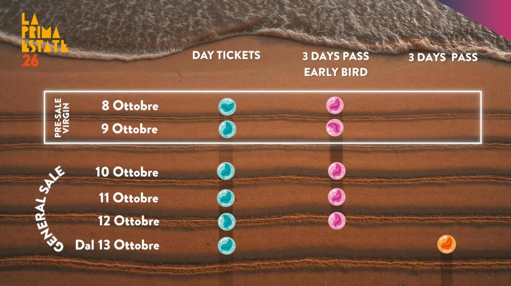 3 DAYS PASS Early Bird è disponibile sia in Pre-Sale che in general sale con disponibilità limitata