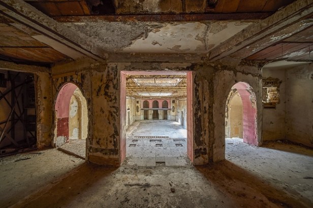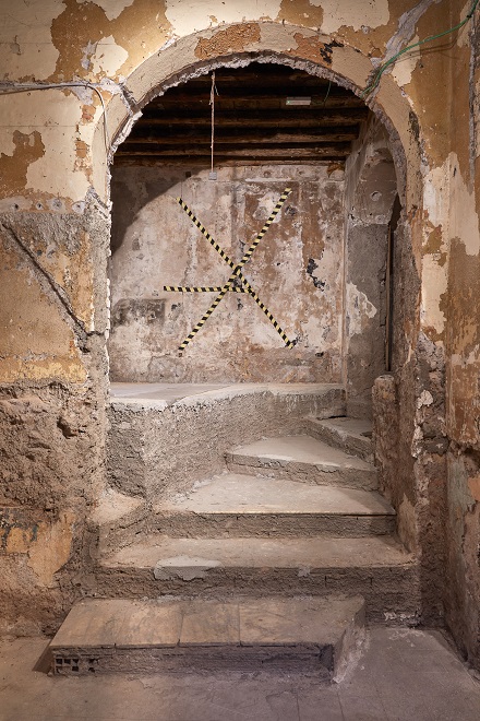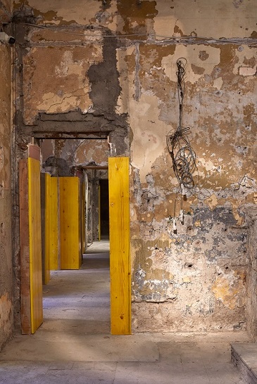 Inaugurato nel 1911 come galleria privata dal noto mercante e collezionista Ludovico Spiridon, l’edificio ha vissuto molteplici trasformazioni e funzioni nel tempo. È stato conosciuto soprattutto come sede di La Cage aux folles, iconico club della vivace vita notturna romana degli anni Ottanta, prima di cadere in disuso. Oggi si presenta come una rovina contemporanea – nascosta nel centro storico e inaccessibile al pubblico, ma non ancora del tutto dimenticata. Con questa presa di possesso effimera, la mostra restituisce vita all’edificio in un atto collettivo di memoria, prima della sua radicale trasformazione come nuova estensione della Bibliotheca Hertziana.
