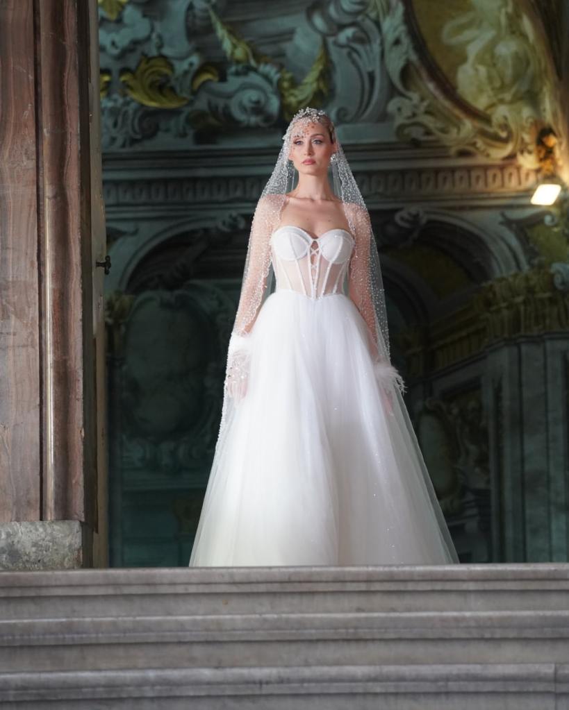 Gianni Molaro ha presentato domenica 12 ottobre 2025 la nuova collezione sposa Stupor Mundi, l’eleganza di bianco nella suggestiva Reggia di Portici.