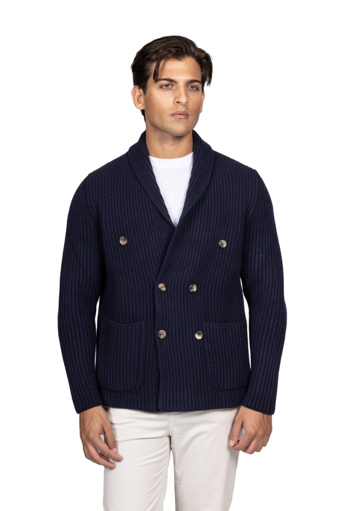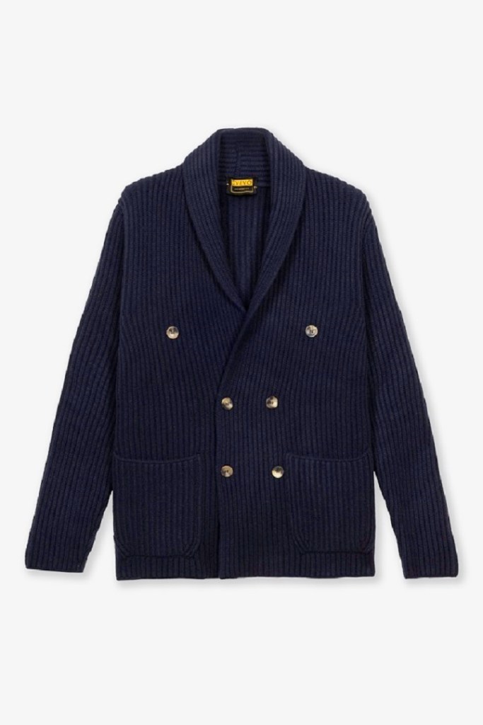 SVEVO reinterpreta la giacca doppiopetto con collo a scialle in una maglia ultra-soft di Baby Merino 160’s: l’eleganza sartoriale incontra il comfort assoluto.