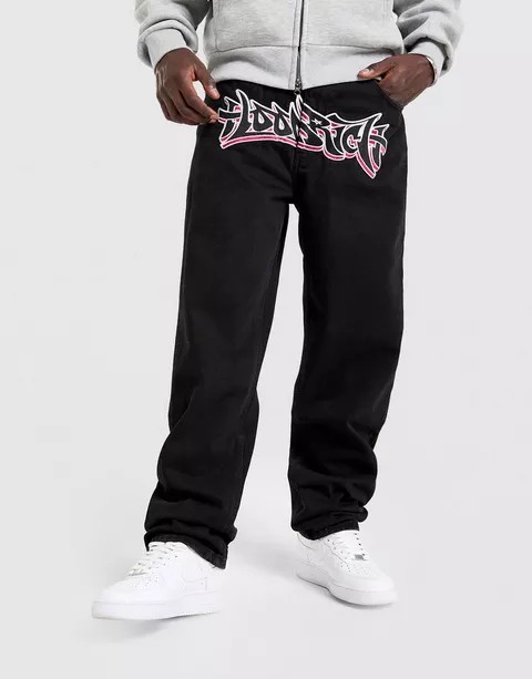 Hoodrich Spark Applique Wide Leg Jeans – Wide fit con dettagli distressed e logo ricamato. Design a vita media per un vibe effortless.