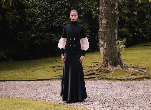 Le gonne, invece, si aprono in volumi generosi, esaltando la fluidità e la libertà di movimento, per un look che si fa notare senza rinunciare alla raffinatezza.