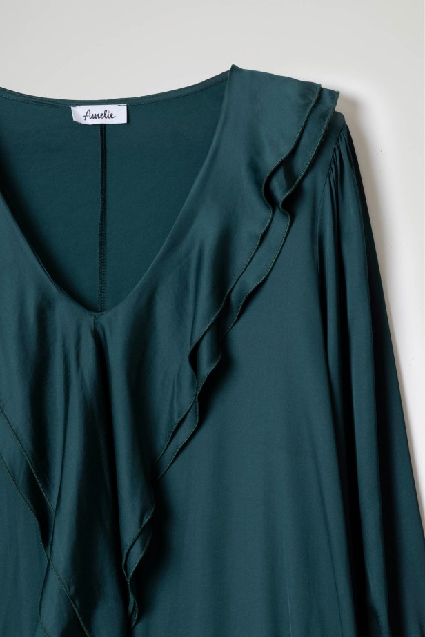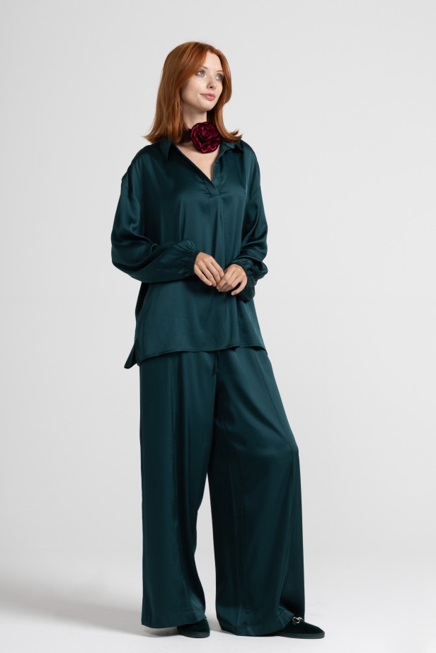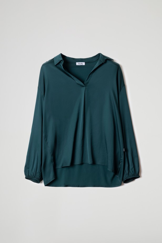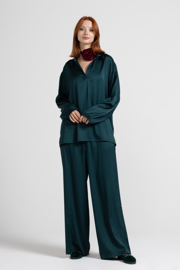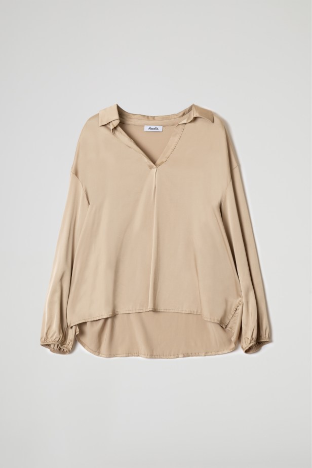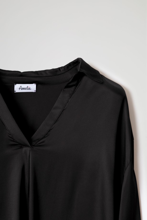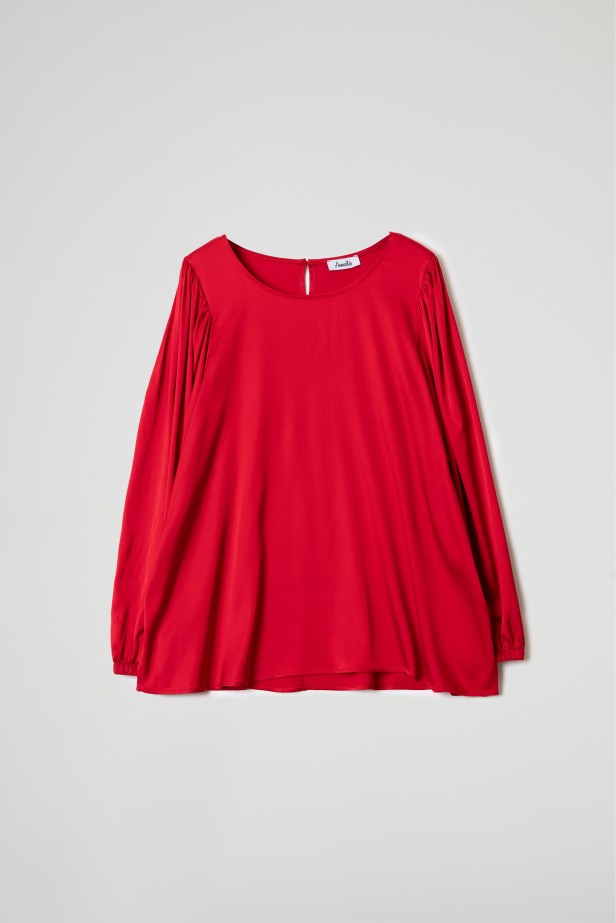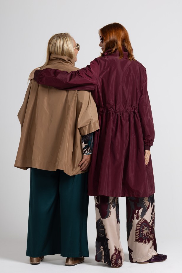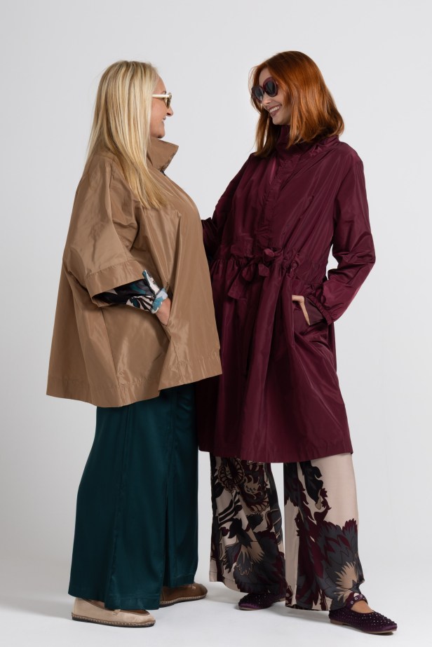 La proposta stilistica si distingue per le sue silhouette morbide e femminili, pensate per valorizzare il movimento e garantire comfort senza rinunciare all’eleganza: linee fluide e tagli curati caratterizzano bluse, pantaloni palazzo e abiti lunghi, con la linea a trapezio che ricorre come filo conduttore, donando armonia e leggerezza.