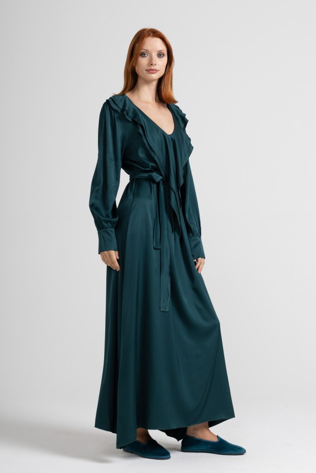 Ogni capo è realizzato con una cura sartoriale evidente: cuciture pulite, rifiniture precise, elastici strategici per una vestibilità adattabile, ruches leggere e dettagli studiati come colletti alla francese e spacchetti calibrati.