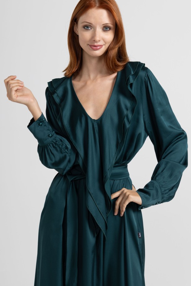 Tutti i capi sono realizzati in raso elasticizzato di viscosa ed Ecovero™, una fibra naturale prodotta da Lenzing con attenzione alla sostenibilità ambientale: deriva da foreste gestite in modo responsabile, con tecniche di potatura selettiva che preservano la biodiversità e riducono l’impatto ambientale.