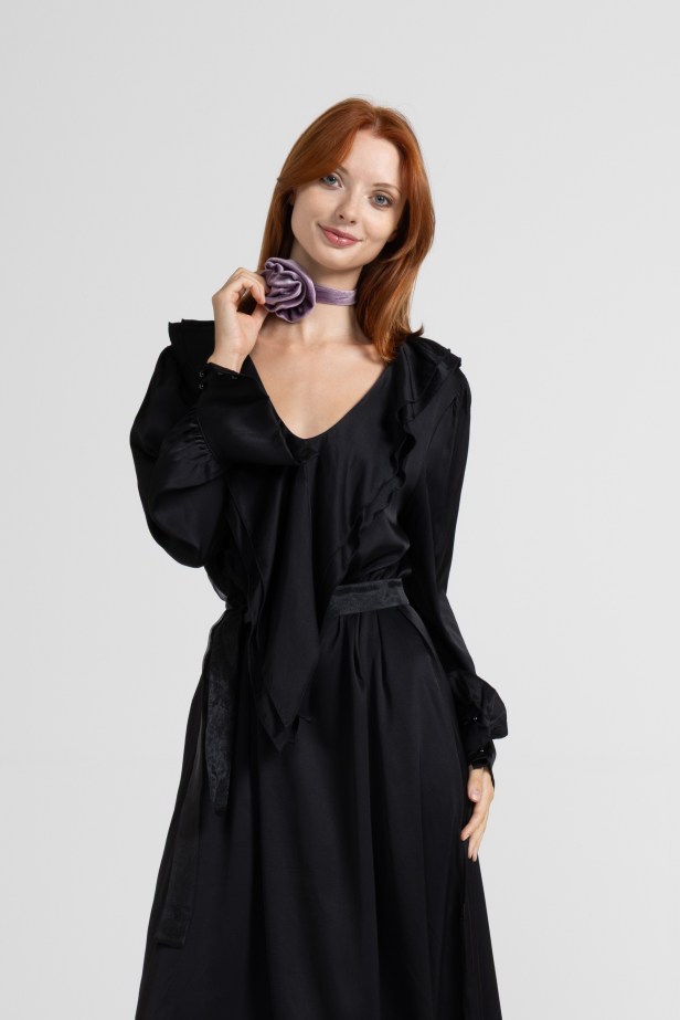Il suo fiore rosso scuro, intenso e profondo, ha guidato la ricerca cromatica e ha dato forma all’anima della collezione: questo fiore è diventato metafora perfetta di una femminilità che unisce delicatezza e forza, leggerezza e radicamento, natura e immaginazione.