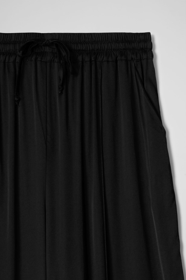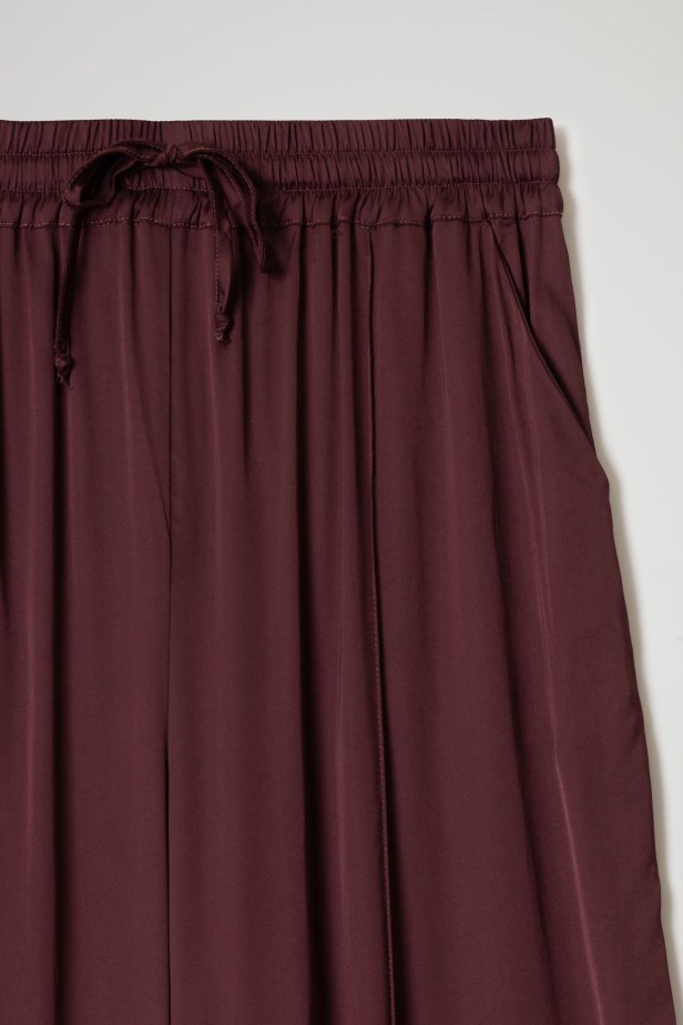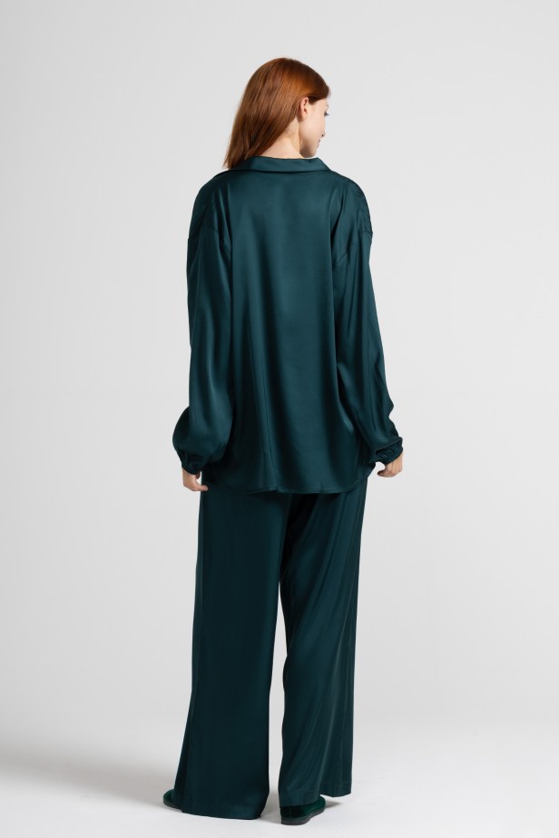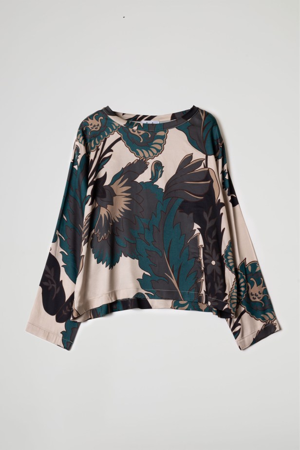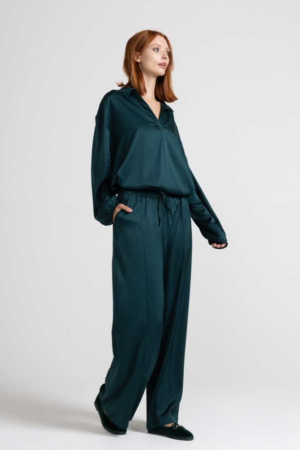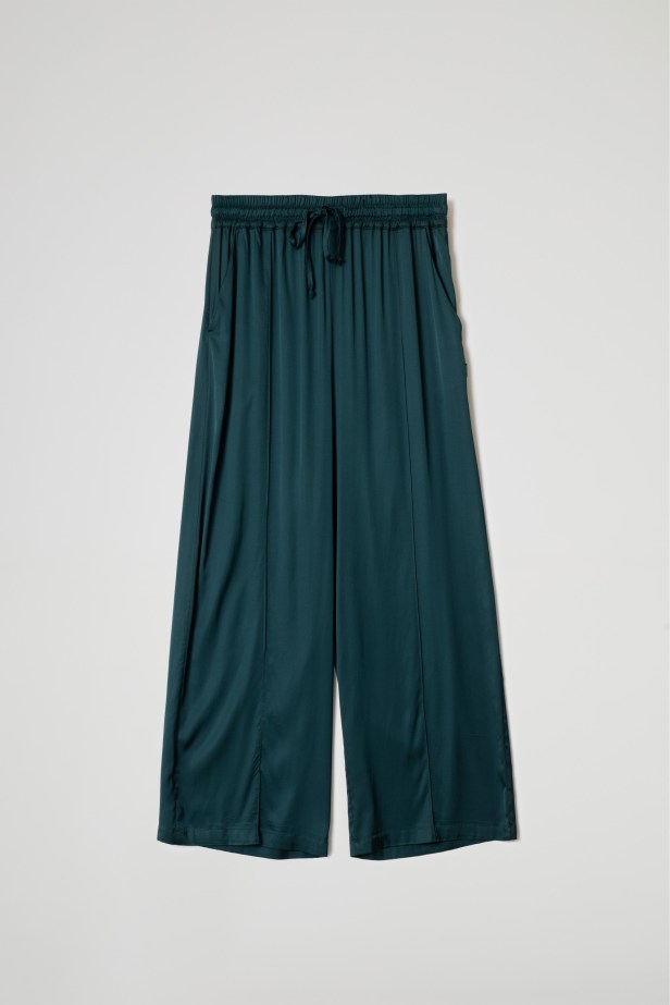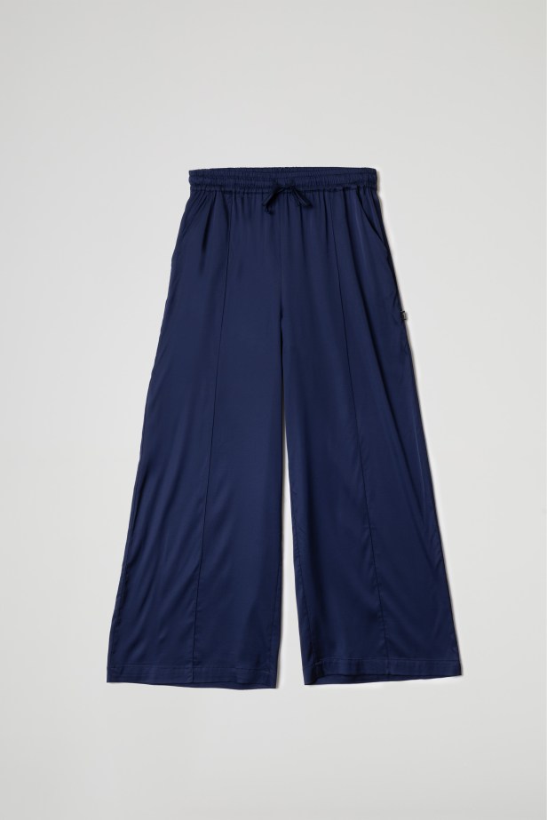 Nel dettaglio, la capsule include pantaloni palazzo con stampa French Garden ed elastico in vita, pantaloni palazzo in raso di viscosa stretch tinta unita con cuciture frontali che richiamano il tailoring, bluse con scollature polo o rotonde arricchite da ruches e spacchetti laterali, camicie con stampa delicata e bottoncini tono su tono, abiti lunghi in raso elasticizzato con cinture abbinate e t-shirt boxy in raso stampato.
