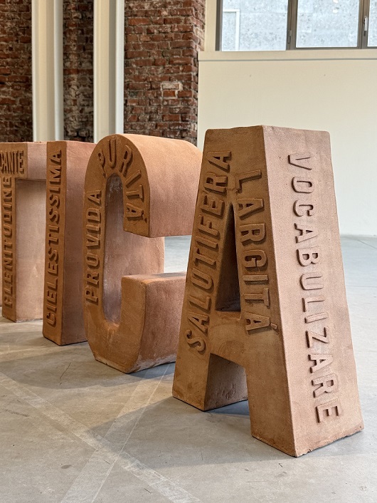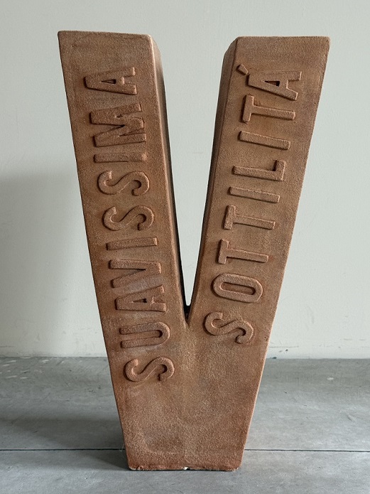 Parole-scultura di Sabrina D’Alessandro saranno esposte nel Cortile delle Armi e nella Corte Ducale del Castello Sforzesco di Milano. Salvatica, in terracotta, prende il nome da un vocabolo del Codice Trivulziano; salvatico letteralmente significa selvatico, silvestre, ciò che nasce spontaneamente senza intervento dell’uomo ma, in un gioco linguistico, Leonardo lo interpretò come «quel che si salva».