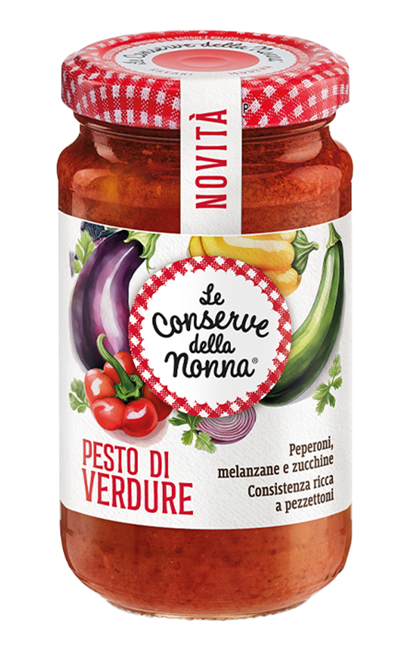 Pesto alle Verdure –Con tante verdure grigliate (peperoni, zucchine, melanzane e cipolle), per un concentrato di natura dal sapore pieno e genuino. Perfetto per chi cerca leggerezza senza rinunciare al gusto.