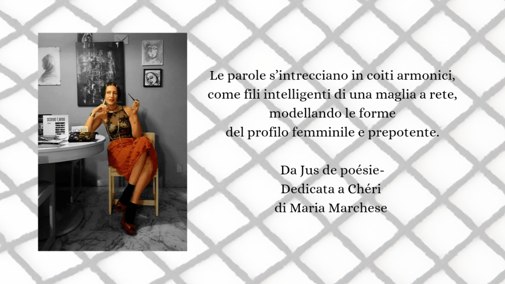 La nuova poesia di Maria Marchese, Jus de poésie, è un componimento di densità sensoriale e simbolica straordinaria. In pochi versi, si condensa una poetica matura, in cui l’eros, la parola e la materia si fondono fino a diventare un’unica sostanza vibrante. È una poesia che non racconta il desiderio: lo genera.