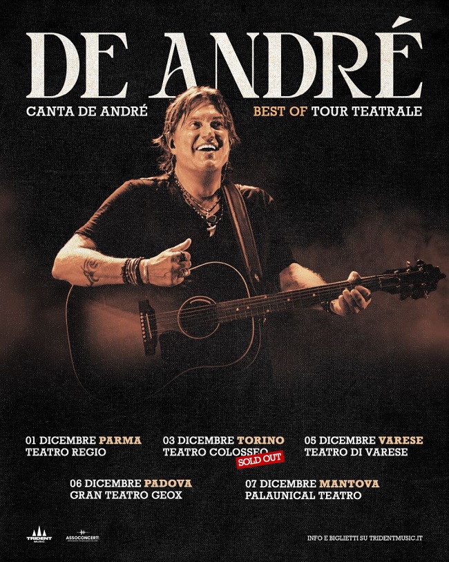 Cristiano De André sarà in concerto anche quest’inverno con “DE ANDRÉ CANTA DE ANDRÉ BEST OF TOUR TEATRALE”, il tour che lo porterà a esibirsi in tutta Italia con un omaggio al padre Fabrizio e alle sue canzoni impresse nella memoria collettiva e ancora estremamente attuali.