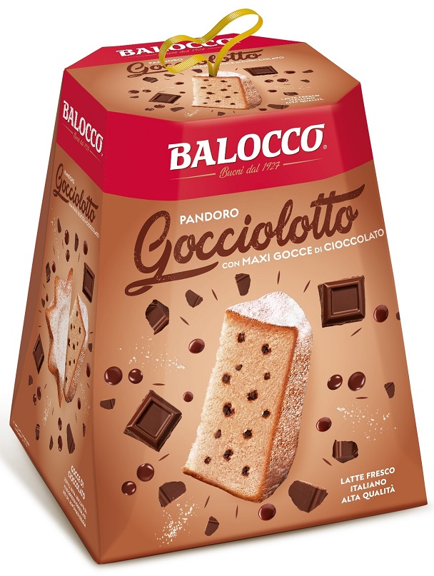 Realizzato con latte fresco italiano alta qualità e uova da galline allevate a terra, il Pandoro Gocciolotto è arricchito da golose maxi gocce di cioccolato. Con delicato spolvero di zucchero per un dolce piacere da condividere. Prezzo consigliato al pubblico: 8,90 euro circa – Formato: 800gr