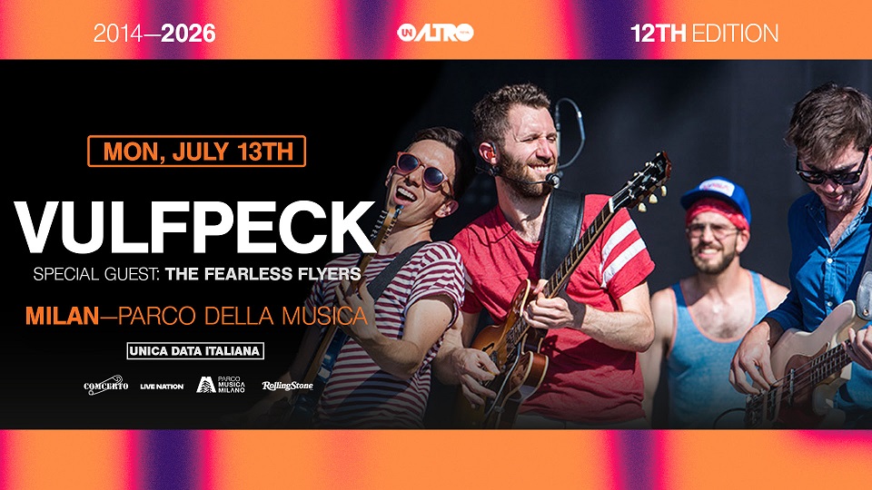 UNALTROFESTIVAL ospiterà il primo concerto italiano, in un’unica data esclusiva nel nostro Paese, dei VULFPECK. La band folk statunitense si esibirà al Parco della Musica di Milano il 13 luglio 2026.Si arricchisce così l’edizione 2026 di UNALTROFESTIVAL dopo l’annuncio di LORDE, una delle artiste più influenti e affascinanti della sua generazione, che calcherà il palco del Parco Della Musica di Milano il 23 luglio 2026. Ad aprire il concerto il supergruppo funk statunitense The Fearless Flyers, nato come progetto parallelo dei Vulfpeck. La band – composta da Cory Wong (chitarra), Joe Dart (basso), Mark Lettieri (chitarra baritona) e Nate Smith (batteria) – è conosciuta per il suo stile essenziale e per il groove irresistibile, in grado di unire virtuosismo tecnico e senso dell’umorismo in nome del funk più puro.