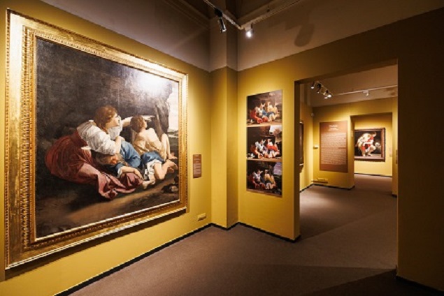Il tema del viaggio costituisce il fil rouge del percorso espositivo che mette in dialogo il pittore con vari contesti figurativi, con gli artisti di volta in volta incontrati – da Giovanni Baglione a Guido Reni, Simon Vouet, Antoon van Dyck, il fratello Aurelio fino alla figlia Artemisia –, con le figure dei committenti e con le esigenze del mercato.