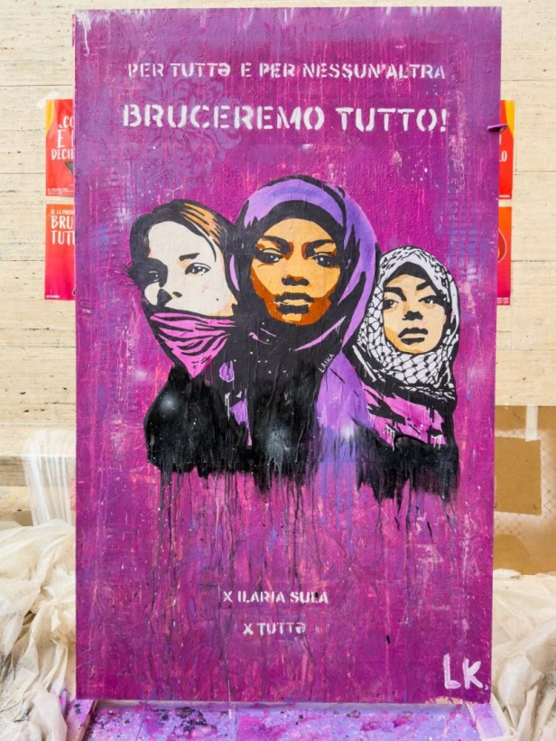«Tornare in strada, sui muri di Roma, è un gesto politico necessario, vitale – dichiara l’artista – In un momento terribile per la democrazia, in cui soffiano venti di guerra e avanzano gli ultranazionalismi, è fondamentale lottare con ancora più forza. La radice della deriva della nostra società è il patriarcato stesso: patriarcali sono le guerre, il colonialismo, il razzismo e i genocidi, come quello di Gaza, dove le donne uccise superano le 28.000, e del Sudan. Sono metastasi di un cancro da estirpare alla radice».
