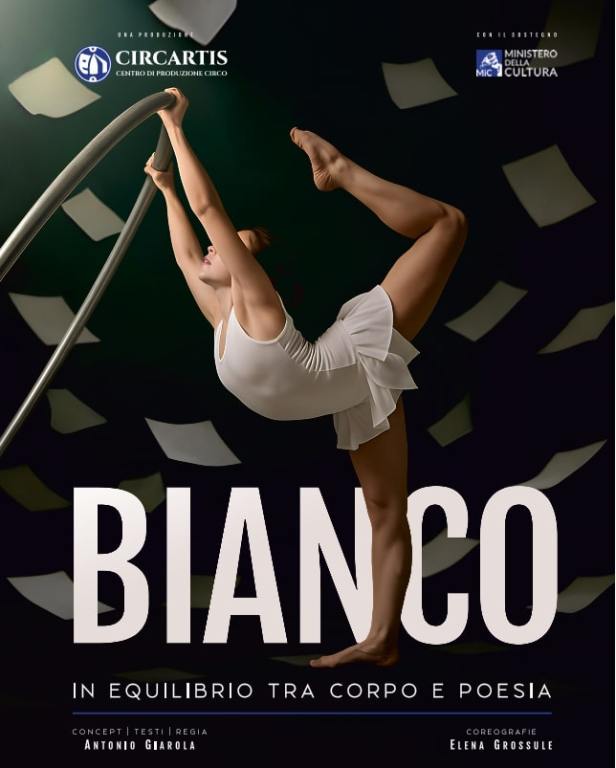 “In equilibrio tra corpo e poesia” è il claim che identifica BIANCO, lo spettacolo di circo-danza creato da CIRCARTIS, il primo Centro di Produzione Circo del Veneto con sede a Legnago, in provincia di Verona, la stessa città in riva all’Adige che ospita l’International Salieri Circus Award, unico festival al mondo con un’orchestra sinfonica dal vivo, oggi considerato dagli addetti ai lavori uno degli eventi più prestigiosi nel settore circense. Il riferimento al festival legnaghese non è casuale poiché il suo creatore e direttore artistico, Antonio Giarola, è anche l’autore e regista di BIANCO, con le coreografie di Elena Grossule, direttrice artistica di CIRCARTIS.