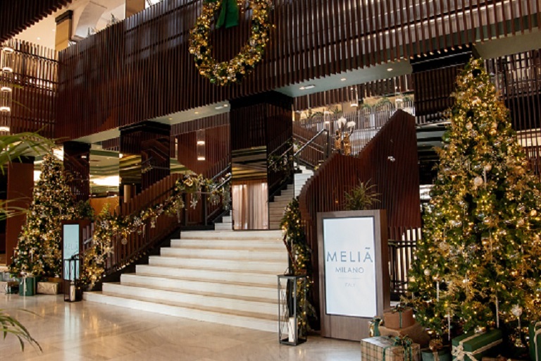 Ospitato nella sede storica di Alemagna trasformata in un hotel cinque stelle dagli architetti Sans Cañada e Moreno de Cala, Meliá Milano quest’anno celebra le festività omaggiando il proprio legame con l’azienda milanese il cui nome richiama immediatamente il dolce simbolo del natale meneghino: il panettone. Lo fa attraverso una collaborazione con T’a Milano, l’espressione contemporanea dell’eredità di famiglia fondata e guidata da Tancredi e Alberto Alemagna. La hall e l’ingresso principale dell’hotel si trasformano così in versione festiva raffinata e creativa, dove ogni dettaglio racconta la storia della città e la tradizione è resa vivace da una visione contemporanea.