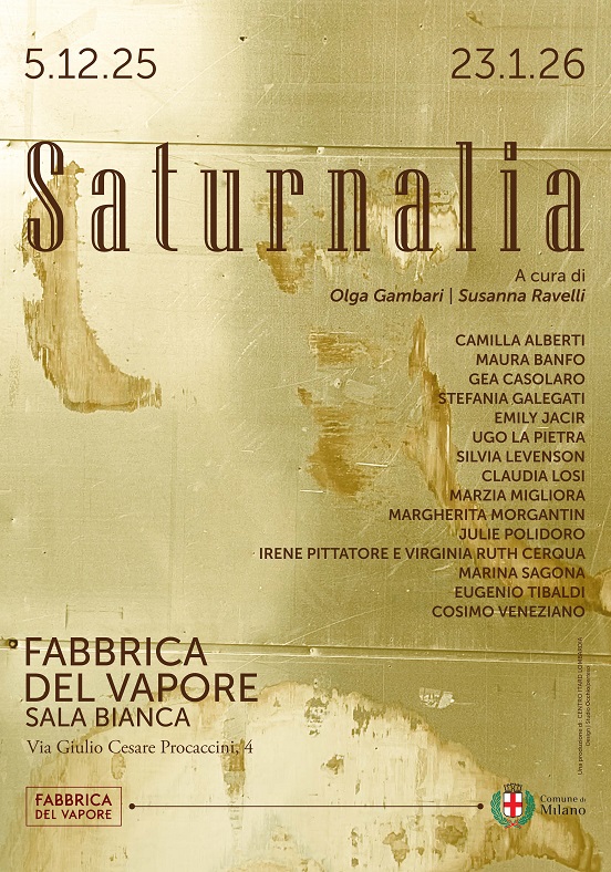 La Fabbrica del Vapore di Milano ospita, dal 5 dicembre 2025 al 23 gennaio 2026, SATURNALIA, una mostra collettiva a cura di Olga Gambari e Susanna Ravelli, con la direzione generale di Maria Fratelli, che coinvolge 16 artiste e artisti.