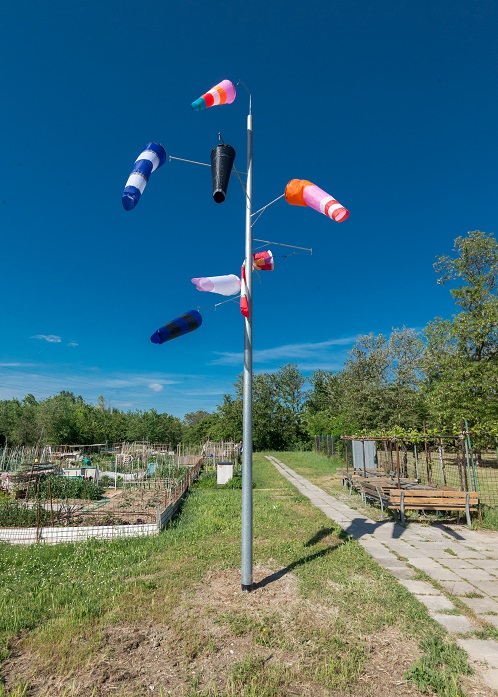Nel cortile della Fabbrica del Vapore è anche presente l’opera Cosinus di MargheritaMorgantin, delle maniche a vento a cui l’artista affida dei messaggi di dibattito politico sui tempi in corso e sulla postura dell’individuo in relazione alla sua comunità, mescolando antico e contemporaneo in una saggezza atemporale.