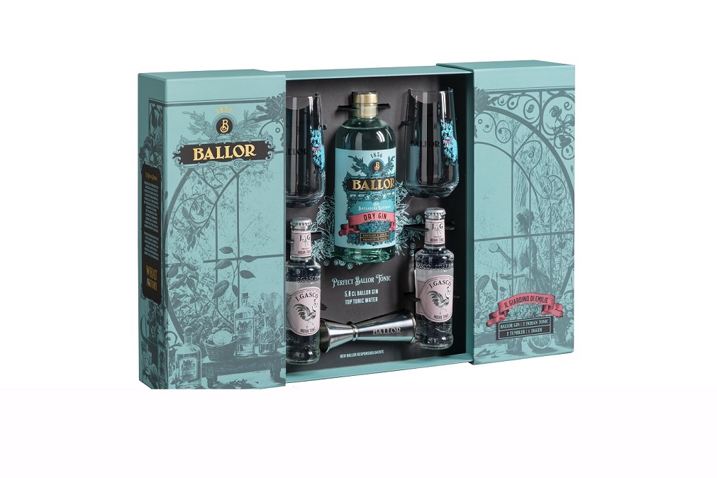 Prezzo consigliato al pubblico: 79 euro circa – cofanetto che comprende Ballor Gin 70 cl 40% Vol., 2 Indian Tonic, 2 Ballor Tumbler e 1 Ballor Jigger