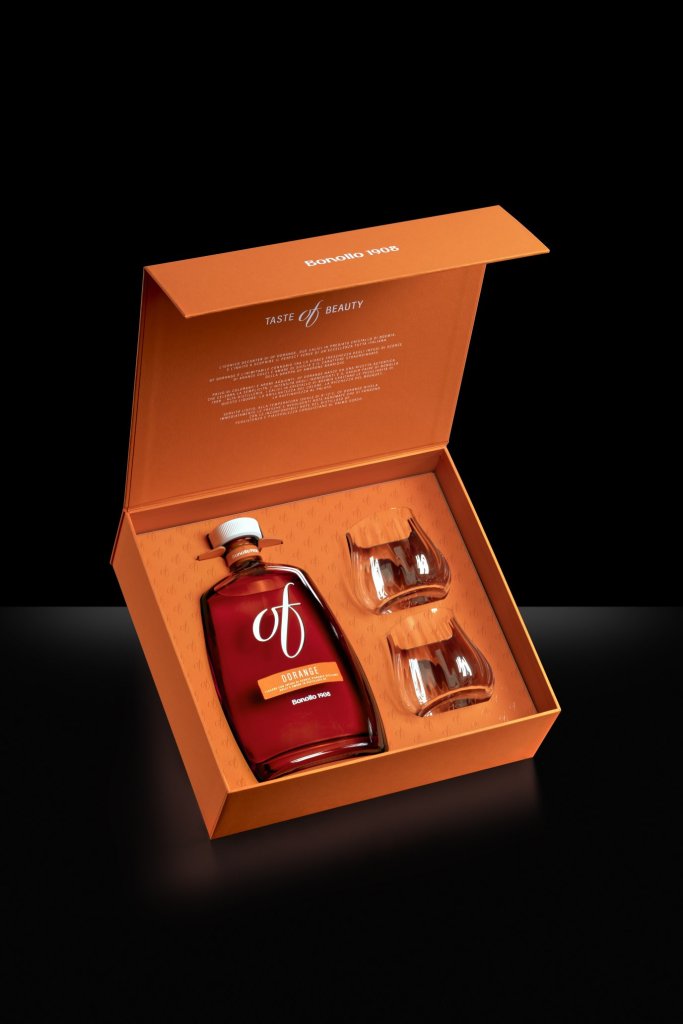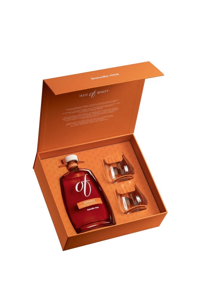 OF Dorange Capsule – Un cofanetto elegante che esprime il piacere autentico di una degustazione raffinata e celebra OF Dorange, incontro tra l’inconfondibile Grappa OF Amarone Barrique e la freschezza degli infusi di scorzette di arance dolci e amare di Sicilia. Due calici esclusivi in cristallo di Boemia completano l’esperienza di degustazione, offrendo la possibilità di assaporare OF Dorange, servito freddo, oppure reinterpretato in cocktail d’autore con gin e spremuta di limone.