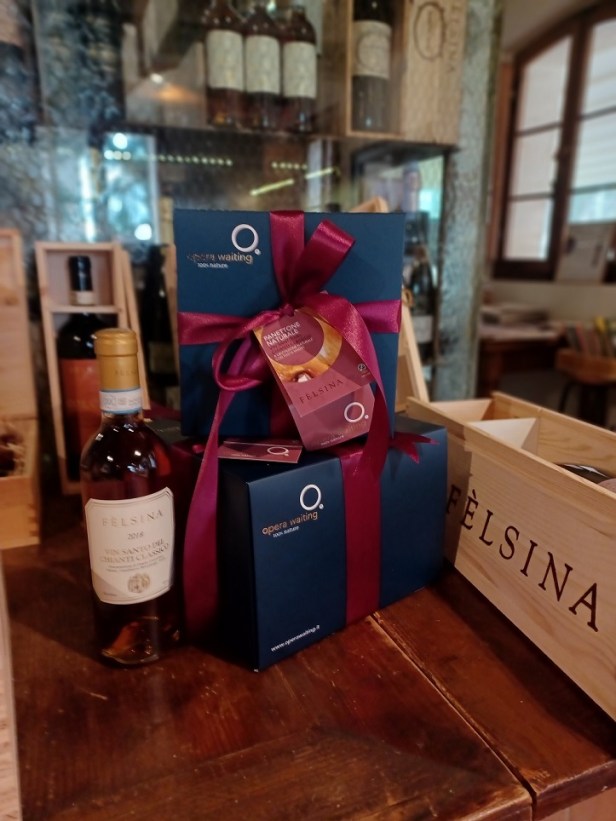 Per le festività natalizie Fèlsina presenta il Panettone al Vin Santo del Chianti Classico in collaborazione con Opera Waiting, laboratorio di pasticceria artigianale con sede a Poggibonsi (Siena) che da sempre valorizza qualità, ingredienti naturali e filiera corta. Opera Waiting si distingue per la produzione di lievitati biologici realizzati senza semilavorati, emulsionanti o conservanti, ma con la sapienza del lievitista e ingredienti selezionati della tradizione toscana.