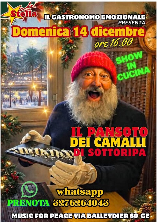 Domenica 14 dicembre 2025, alle ore 16.00, Il Gastronomo Emozionale presenta al Summer Garden del Festival “C’è Stella” – Music for Peace lo “Show Cooking del Pansoto dei Camalli di Sottoripa”.