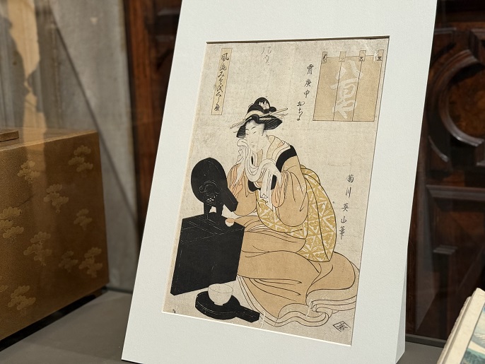 Superfici segrete che intessono racconti e tematiche, che scandiscono le 10 sezioni dell’esposizione: religione e spiritualità, tra sincretismi shinto-buddhisti, divinità della fortuna e figure come Bodhidharma; storia antica e moderna del Giappone, dalle navi olandesi del periodo Sakoku al sistema del Sankin Kōtai, fino alle riforme Meiji e alla crisi economica, la “crisi dell’oro del 1929”; e ancora, la tradizione con riferimenti a cultura popolare, proverbi, leggende, il culto dei guerrieri evocando l’onore e la storia dei samurai; il teatro e la musica, tra storie, personaggi e leggende del teatro Nō e Kabuki, omaggi ai grandi attori delle dinastie storiche e al mondo delle maschere; la cultura e lo stile, evocando la raffinatezza degli abbinamenti e l’eleganza degli accessori, tra le cinture obi, sagemono, inrō, netsuke, calzature tradizionali completano il racconto di un sistema estetico complesso, in cui ogni elemento – anche il più piccolo – diventa simbolo, rituale, gesto di stile.