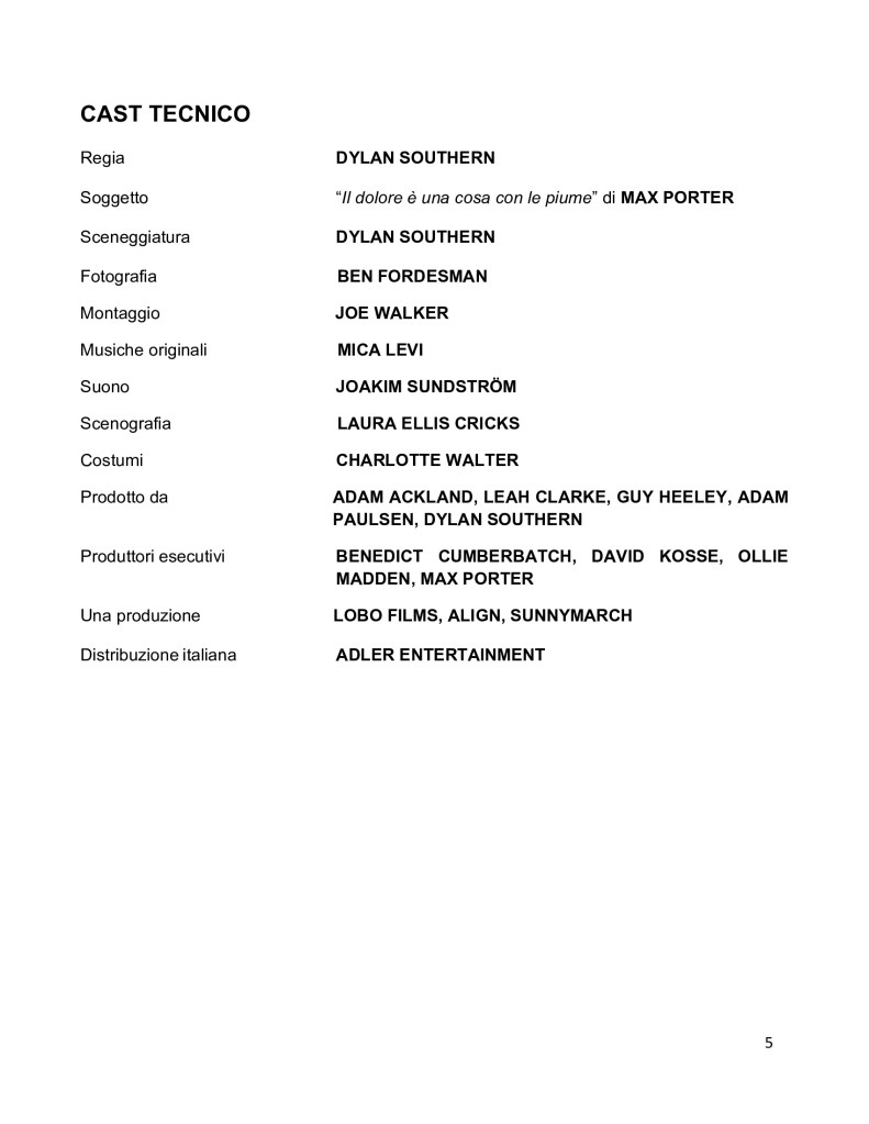 Tratto dal celebre romanzo di Max Porter 2Il dolore è una cosa con le piume” (pubblicato in Italia da Guanda), il film conserva lo spirito poetico e sperimentale dell’opera letteraria, trasformandolo in una vera e propria un’esperienza cinematografica autonoma, visivamente audace e profondamente umana.