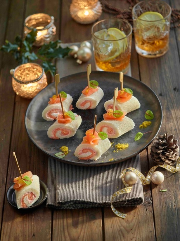 Un finger food elegante e goloso, perfetto per accompagnare un pomeriggio di giochi natalizi. Piccoli rollé di pancarré con formaggio spalmabile, carpaccio di Salmone Affumicato MOWI ESSENTIAL 300g, micro-greens e una nota brillante di caviale giallo diventano bocconi raffinati, ideali da gustare tra una mossa e l’altra in un clima di vera convivialità.