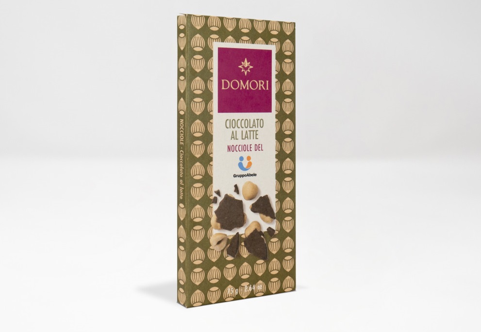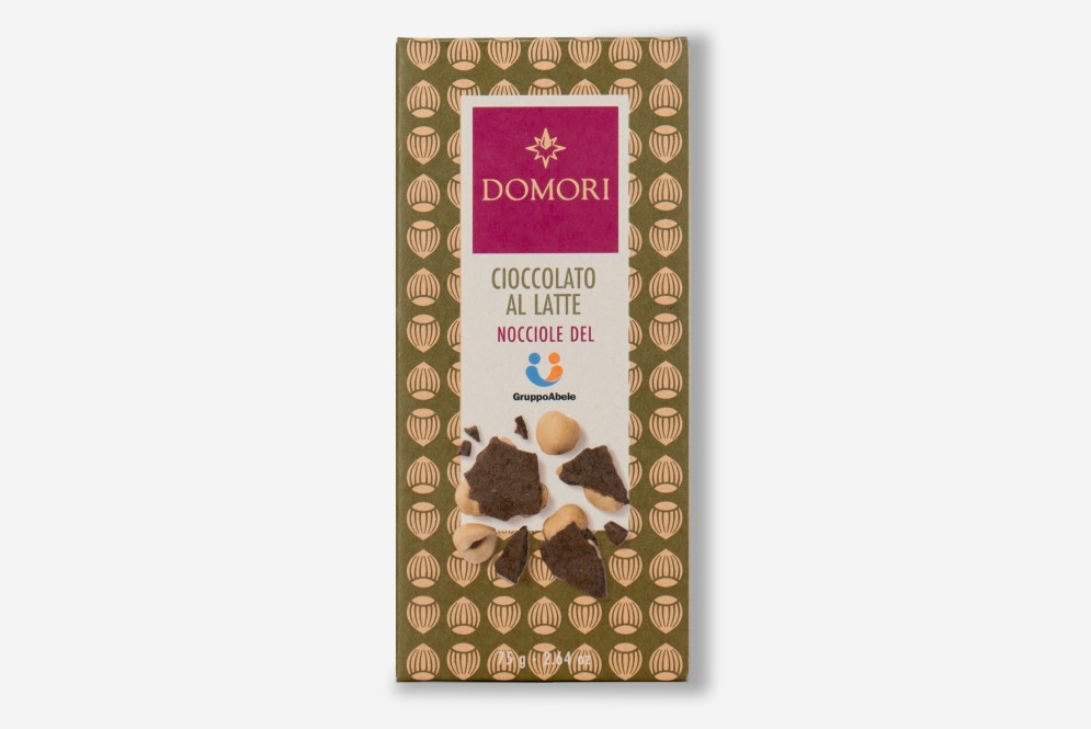 La nuova ricetta della Tavoletta Domori – Gruppo Abele, a base di finissimo cioccolato al latte Domori e 100% nocciole locali, valorizza la nocciola trilobata Gentile, varietà simbolo della tradizione piemontese e, in particolare, della comunità di Murisengo, dove si trovano i noccioleti del Gruppo Abele, da cui proviene il 100% della materia prima acquistata da Domori per la realizzazione della tavoletta.