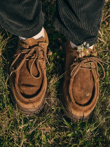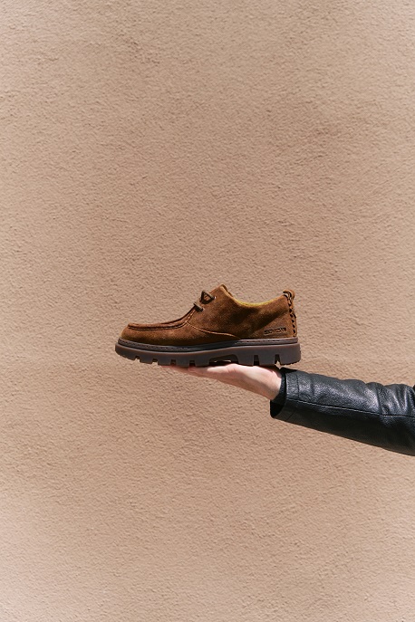 Il mocassino Unalome è una reinterpretazione dei classici wallabies degli anni ’60. Ideali per essere indossati nella vita di tutti i giorni, possono adattarsi a molteplici utilizzi in stile elegante, sportivo o casual. Realizzata in morbida pelle scamosciata naturale da 1,8 mm selezionata e oliata per un aspetto leggermente vintage e una sensazione vellutata, la scarpa presenta mascherina e linguetta cucite a mano e un discreto logo inciso. La fodera in cotone biologico vellutato, i lacci RPET riciclati, la soletta ergonomica estraibile in EVA e la suola in gomma PU a bassa densità assicurano comfort e leggerezza, mentre l’imballaggio FSC riciclato e riciclabile conferma l’impegno del brand verso una produzione responsabile.